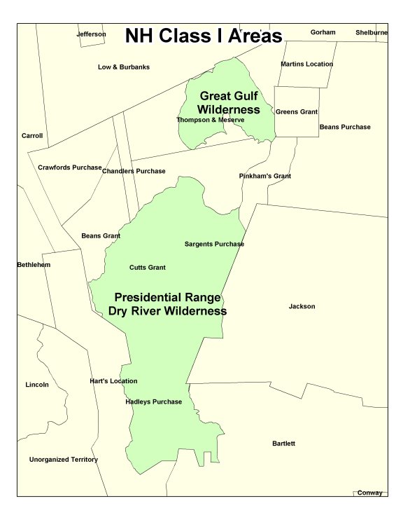 Acadia National Park and Moosehorn National Wildlife Refuge contain Class I areas located within Maine. Class I areas in close proximity to Maine are the Roosevelt Campobello International Park in Canada and the Presidential Dry River Range and the Great Gulf Wilderness Area in New Hampshire.
