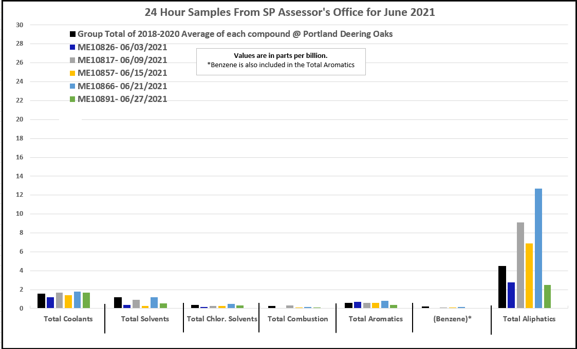 - The remaining six canisters (ME09229, ME09231, ME09232, ME09233, ME09234, ME09235) are void due to laboratory error. The canisters were not pumped down before shipment to South Portland therefore it was not possible to collect a valid sample of ambient air.