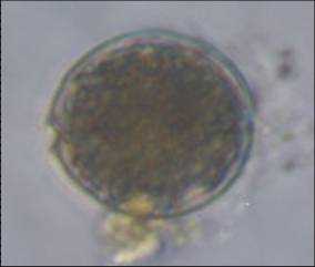 Yellow-green algae are a family of Brown Algae (Ochrophyta). They are thought to have evolved from a primitive, unicellular organism that engulphed and incorporated a red algae into its cellular structure. Each chloroplast is surrounded by four membranes that are thought to represent the original two membranes surrounding the red algae's chloroplast, the red algae's cell wall, and the membrane from the primitive organism's food vacuole. Brown algae chloroplasts contain chlorophylls a and c along with other photosynthetic pigments that give them a brownish color. Some yellow-green algae can be confused with green algae, however they do not produce starch. The starch in green algae turns a dark color when stained with iodine, but yellow-green algae do not produce starch and do not stain. Different types of yellow-green algae can have unicellular, filamentous, or siphonous forms. Vaucheria is a common yellow-green algae in Maine streams and is siphonous in form. A siphonous algae has long filaments that are hollow inside. Imagine a small straw inserted into a larger straw. All the cellular material is contained between the larger and smaller straws, while the area within the smaller straw is empty. A filament of Vaucheria has no cell walls. Technically, it is all one cell and the many nuclei, chloroplasts, and other cellular structures that flow throughout the filament.