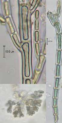 Diatoms are a family of Brown Algae (Ochrophyta) and share many characteristics with the yellow-green algae. The structure of diatoms is quite different, however. Diatoms have hard shells made of silica, which are formed by a top valve and a bottom valve that fit together. Diatom valves have many small holes in them that allow transfer of materials through the valves. Although they come in many shapes and sizes, diatoms are divided into centric forms (which are circular and radially symmetrical) and pennate forms (which are bilaterally symmetrical). Like many other algae, diatoms produce a gel-like substance called mucilage that helps them stick to surfaces and stick together to form colonies or filaments. Mucilage helps protect cells by keeping other things from growing on them. Some diatoms have slits in the valves, called raphes, which allow them to expel mucilage and move over surfaces. Some diatoms are tiny while others are huge in comparison. Diatoms are the most diverse group of algae in most Maine streams, rivers, and wetlands.